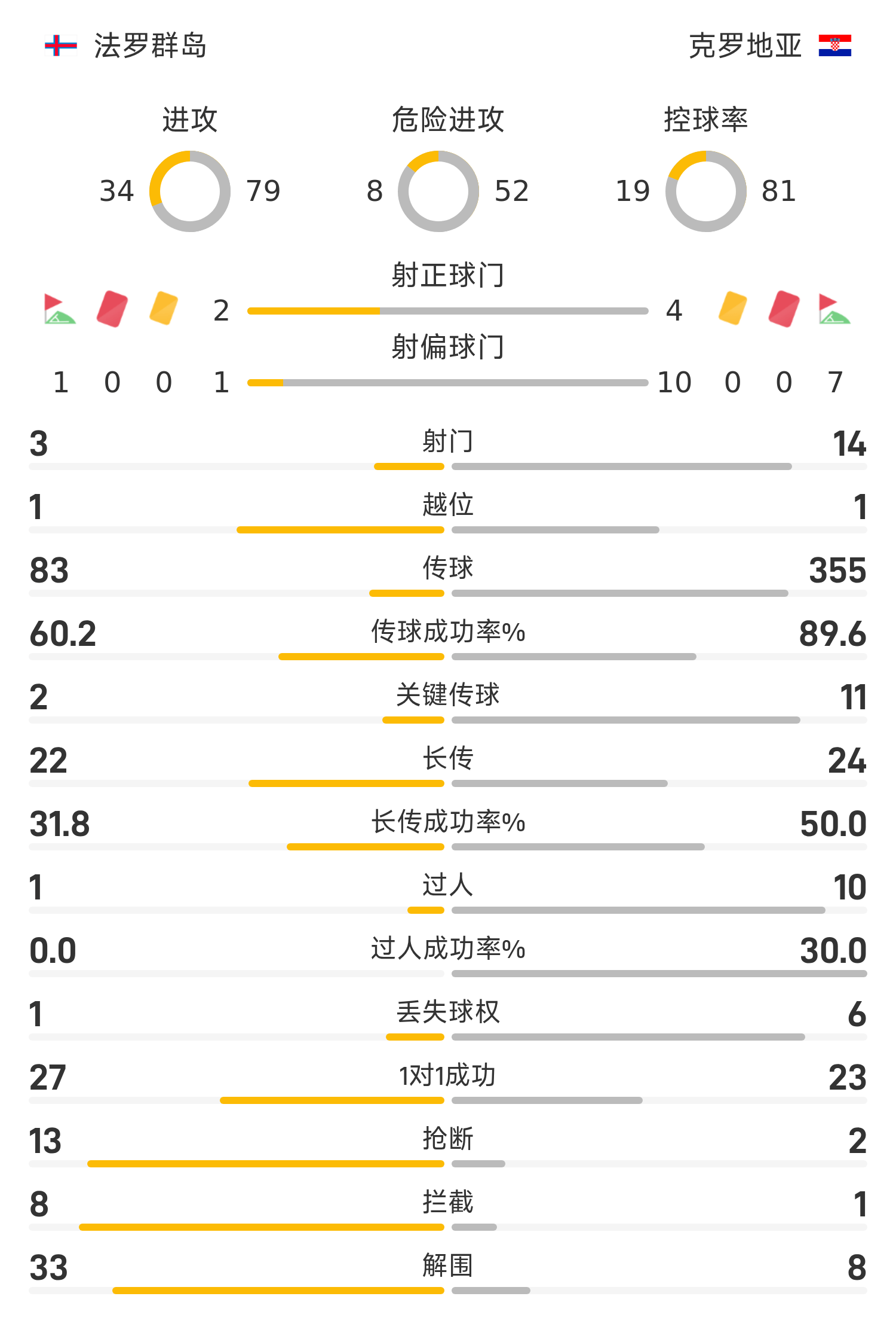 31’布迪米尔摆渡,克拉马里奇接力顶进,法罗群岛0-1克罗地亚